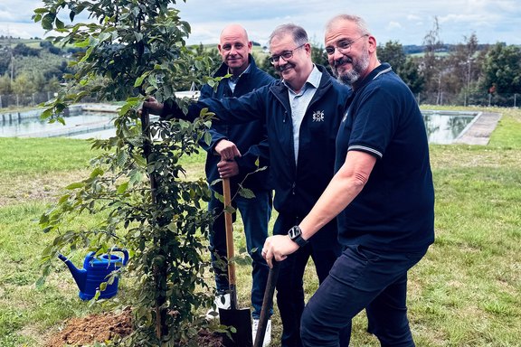 Im Namen des Unternehmens engagierten sich Jan Timmermann (Head of Central Services & Facility Management), Lars Niemczewski (Head of Corporate Communications & Innovation Manager) sowie Andreas Hohn (Head of Management Systems) bei der Pflanzaktion.